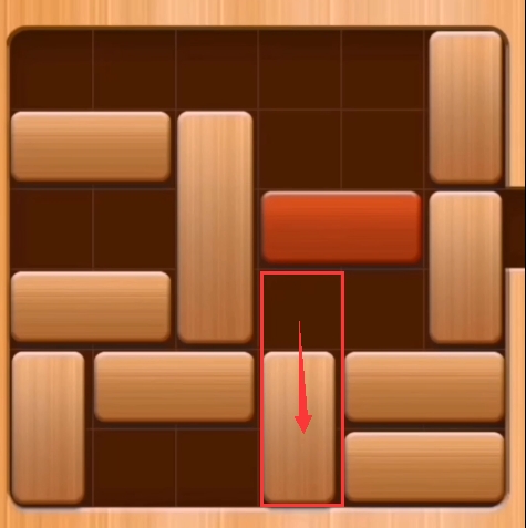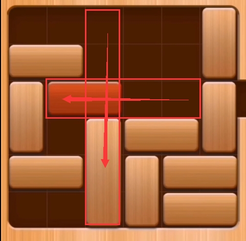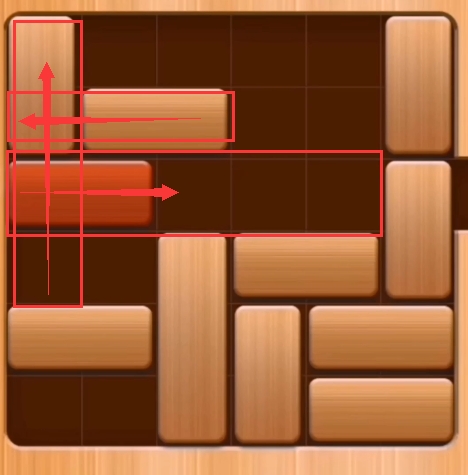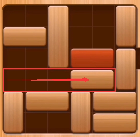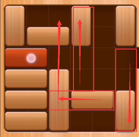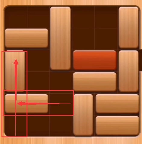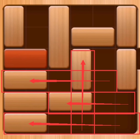 第五步:将第二排的积木往右边推、第一列的积木往下推、红木往左推(如图:)