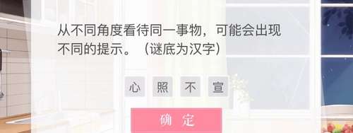 3、从不同角度看待同一事物,可能会出现不同的提示。(谜底为汉字)