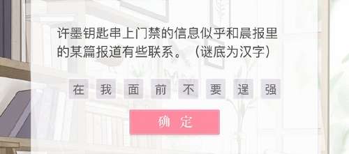 2、许墨钥匙串上门禁的信息似乎和晨报里的某篇报道有些联系。(谜底为汉字)