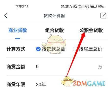 2、点击公积金贷款的选项。