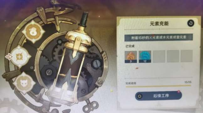 统一的,矿石可以随便采一下,元素方面要3秒的火和12秒的水,最后打无相之火,最后制作一下就可以了。