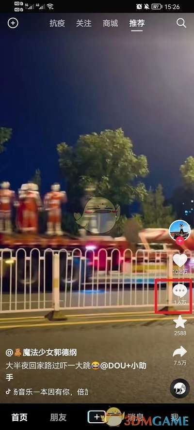 1、打开抖音,进入到视频播放界面,在界面中点击【评论】;
