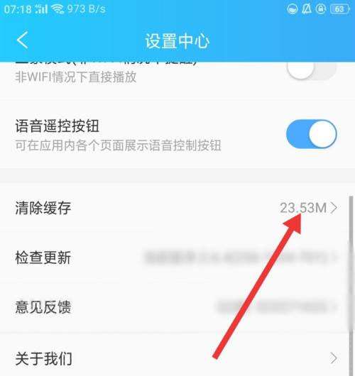 第三步:进入到设置界面后,我们再点击清除缓存选项。
