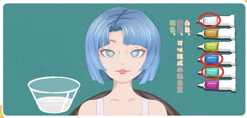 2、然后使用白色、蓝色和绿色进行调色,组成北极光蓝。