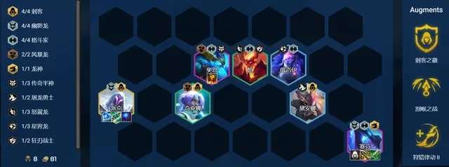这套阵容接替了屠龙刺的位置,且阵容上限比屠龙刺更高,且阵容无需追三星,2星赛芬有刺客+无尽就可乱杀敌方后排,依靠站位也可打高坦度阵容,是这版本上分首选阵容。