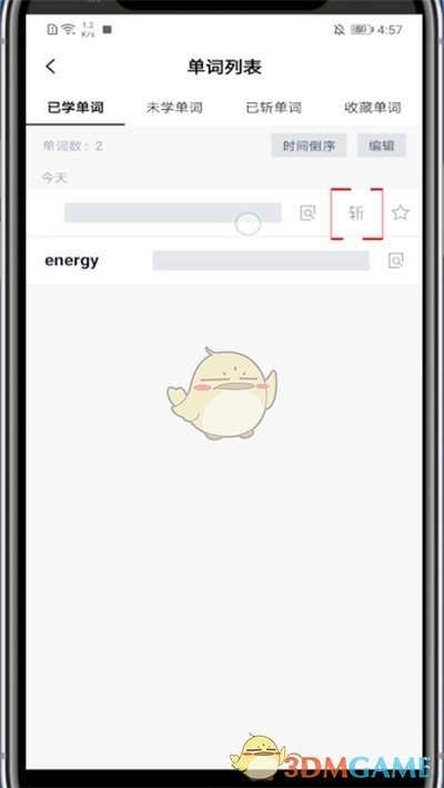 2、找到你要删除的单词,向左滑动点击斩即可。