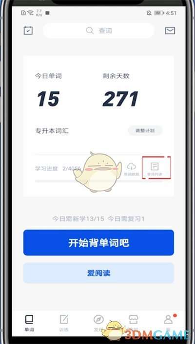 1、打开百词斩,在首页点击单词列表,点击已学单词