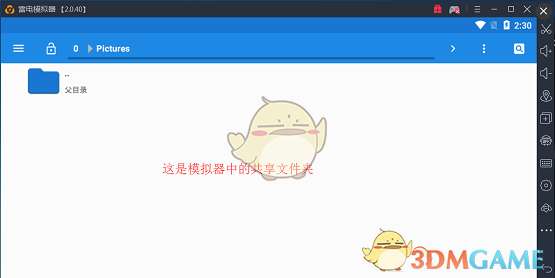 6、将PC中的文件共享到模拟器中的办法也是如此,只不过步骤反了过来,先将文件添加到PC文件夹中,然后在模拟器的共享文件夹就可以看到该文件了。