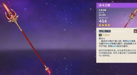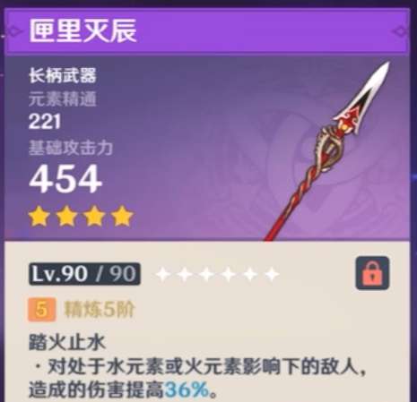 1、这是一把四星的长柄武器,能够提高角色的攻击力,并且还有很强的属性加成。
