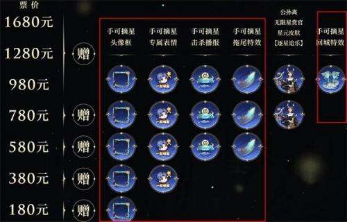2、通过购买《摘星辰》音乐剧门票,在达到指定的档次后可以获得不同类别的奖励。
