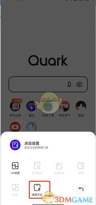 夸克浏览器怎么设置滑屏方式?
