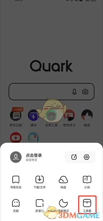 1、打开夸克浏览器,点击右下角的设置。