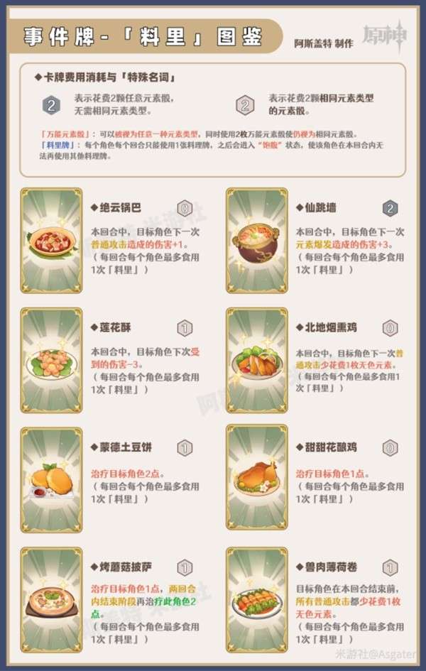 1、最为基础的事件牌,只要满足元素骰要求,在自己的行动回合内即可打出,当前共15张