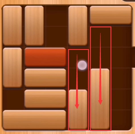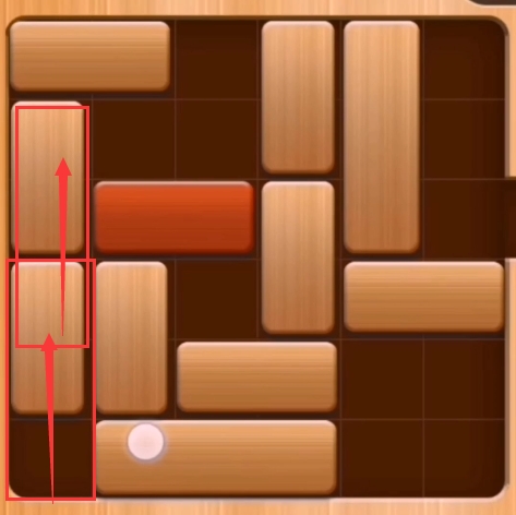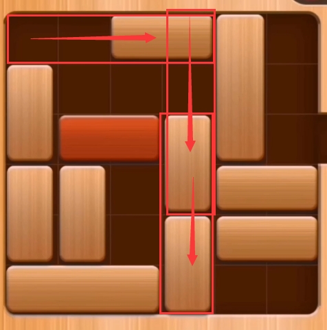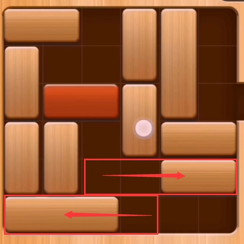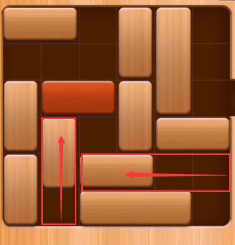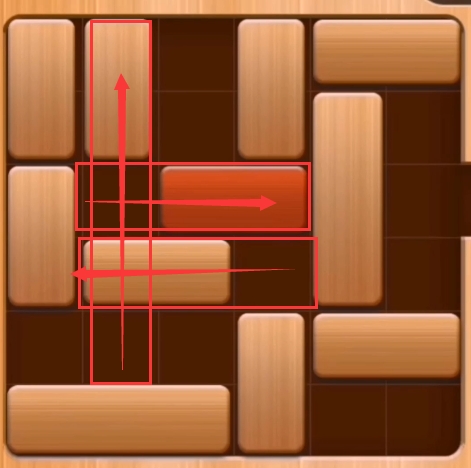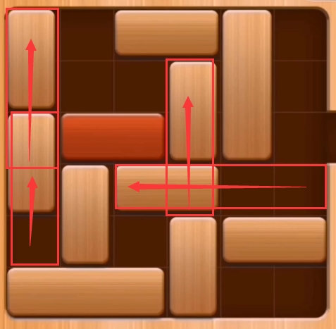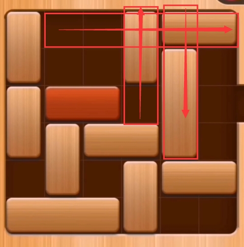 第九步:红木往右边推、第五排的积木往左边推、第二列的往上推: