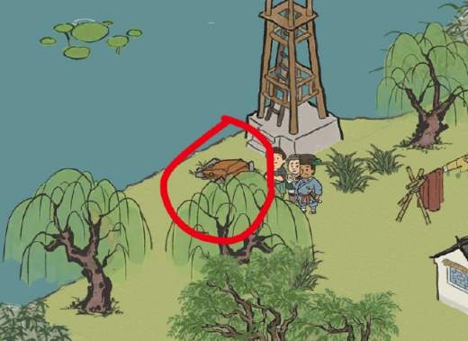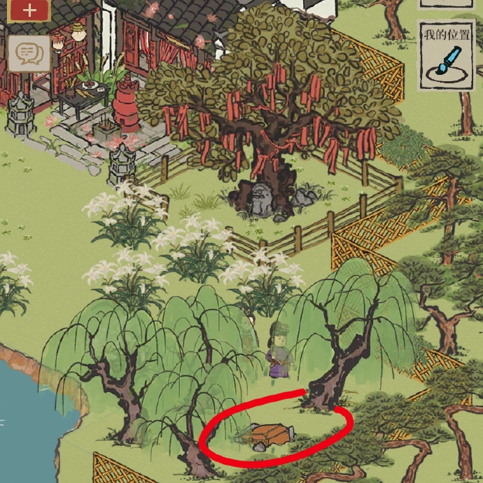 3、先乘船前往月老祠,在下图所示的位置找到第三个宝箱。