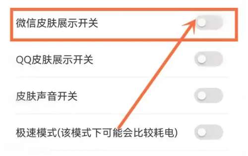3、接着进入到微信/QQ皮肤设置页面,关闭“微信皮肤展示开关”开关按钮即可,如下图所示。