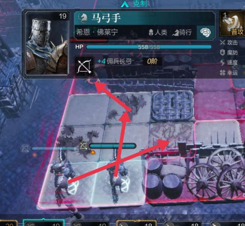 双弓骑正式开始接战,下图下方的弓骑先动。