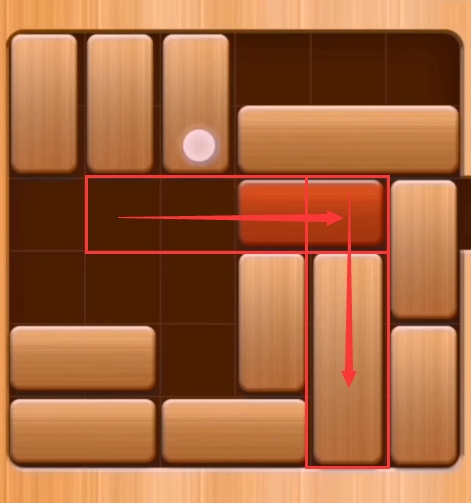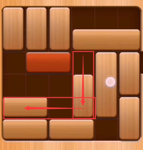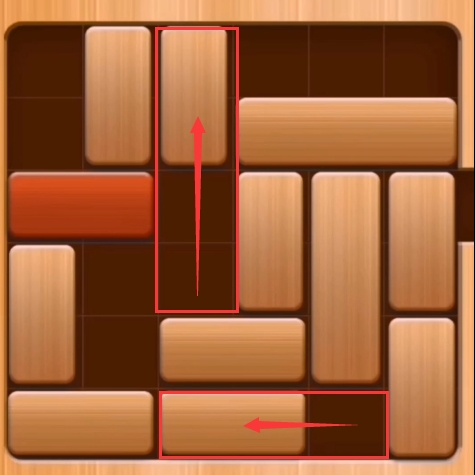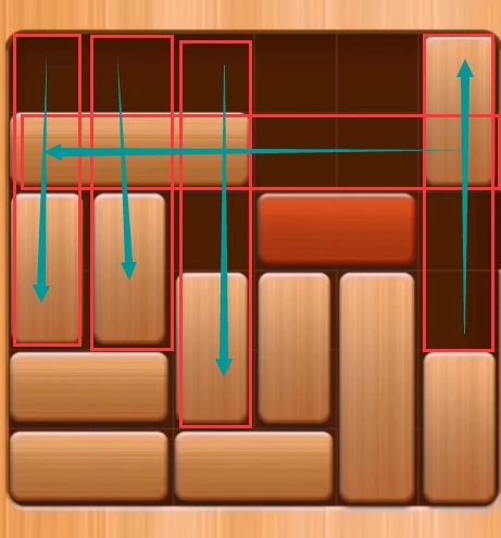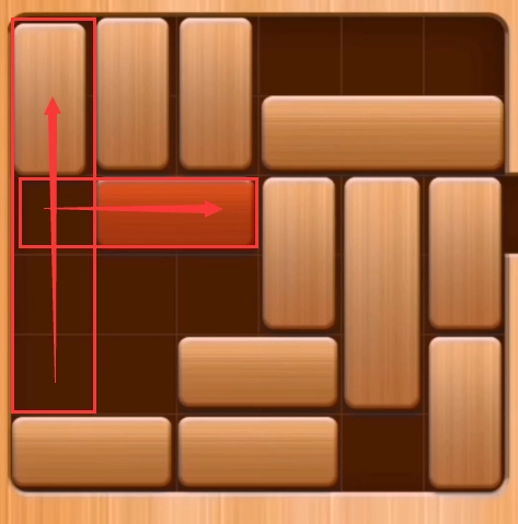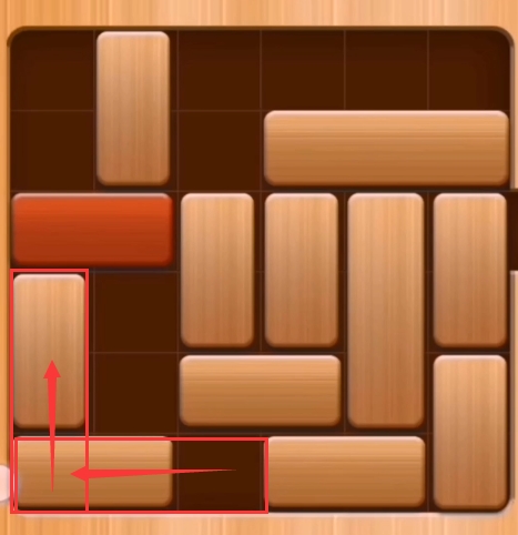第五步:将红木往右边推并把第一列的积木往上推(如图:)