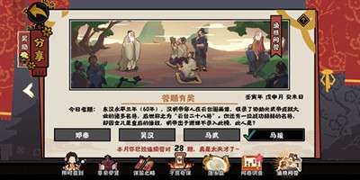 《无悔华夏》游戏中渔樵问答7月29日题目:东汉永平三年(60年),汉明帝命人在云台阁画像,收录了协助光武帝成就大业的诸多名将,后世称之为“云台二十八将”。但还有一些战功赫赫的名将,却因女儿是皇后的缘故,明帝出于避嫌不录入此榜,此人是?答案就是马援。