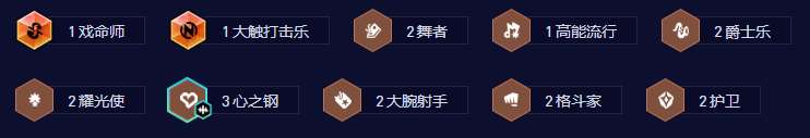 1戏命师、1大触打击乐、2舞者、1高能流行、2爵士乐、2耀光使、3心之钢、2大腕射手、2格斗家、2护卫