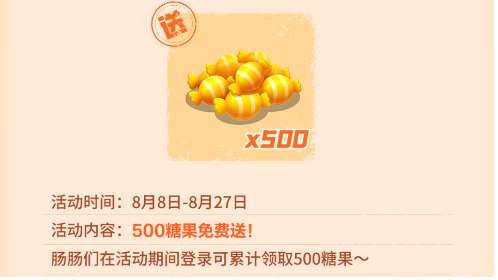 活动期间,肠肠们登录游戏累计可以领取500糖果