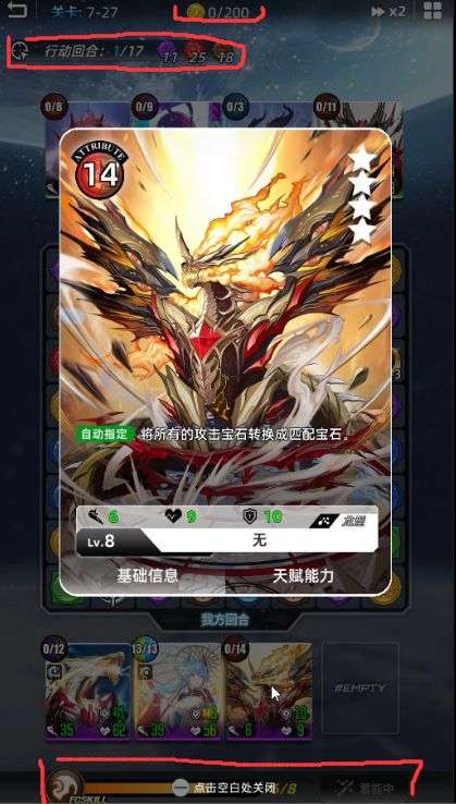 3.主线战斗增加能量条系统“进行任意消除可获得能量,发动能量可优先把场上8个非自己需要的属性宝石变成本关获得的额外金币,并获得一个额外回合”。大大增加大家战斗的连贯性,增加前期容错率。