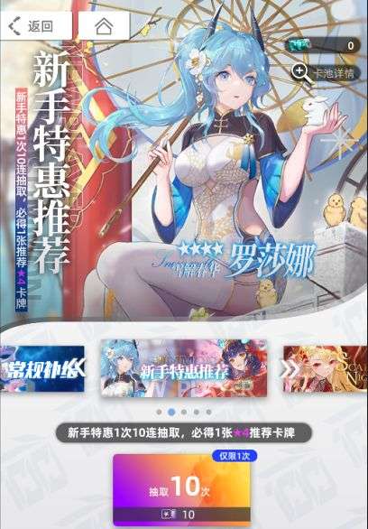 a.新手卡池从20连必出4星卡改为10连必出4星卡