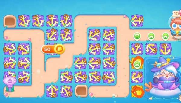 1、开局在上方位置摆放2个满级船锚,打掉中间的道具后继续摆放船锚,首领攻击是吐泡泡,第一时间暂停点掉就行。