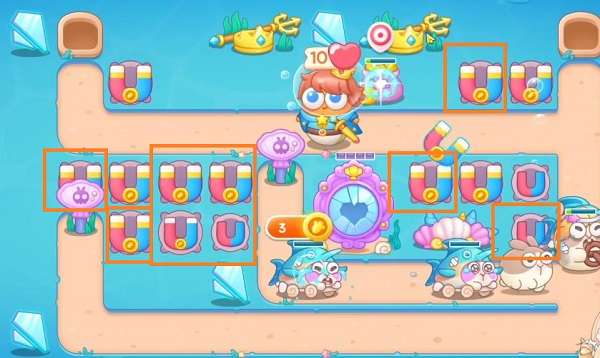 4、下面可以优先清理,清理完后往上面开图,第4波就能做到道具全清。