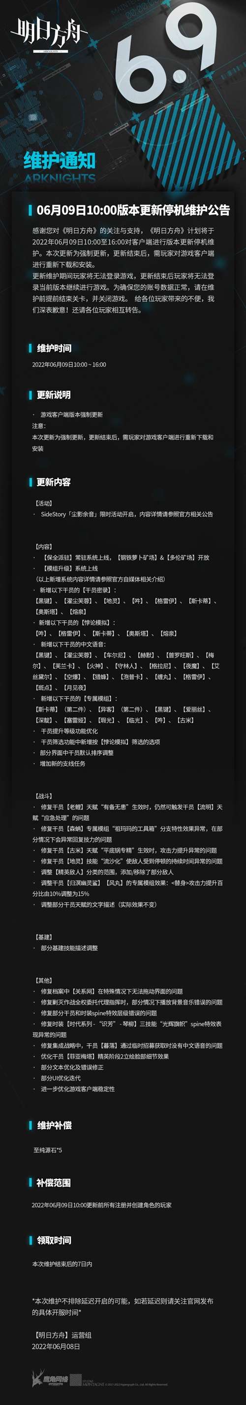 好啦~以上就是明日方舟更新停机维护公告内容啦~明日方舟尘影余音活动即将开启,各位,你们准备好了吗?那就让我们新版本见啦~