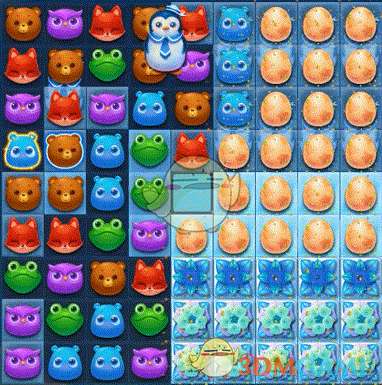 2、第二步:贴边清除下方雪块,同时留意组合直线、爆炸特效等辅助消除。