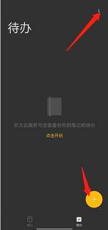 1、开启便签,点击下方的代办,然后选择上方的设置。