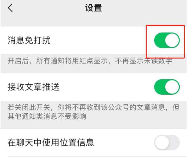 3、在设置中可以看到【消息免打扰】按钮,点击右侧按钮即可开启。
