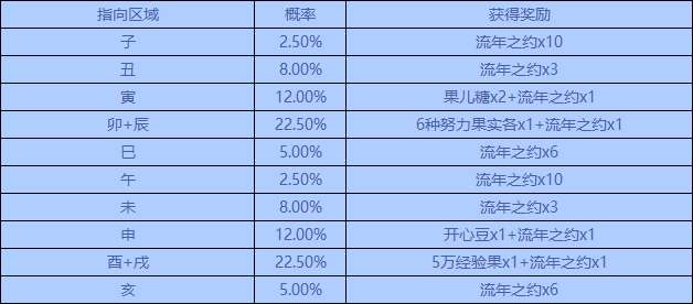 ①初始幸运时刻是“丑”时(流年之约*3),那么首次刷新(免费)后幸运时刻会在“亥”时和“巳”时(流年之约*6)中随机,再次刷新(800洛克贝)后幸运时刻将会在“子”时和“午”时(流年之约*10)中随机;
