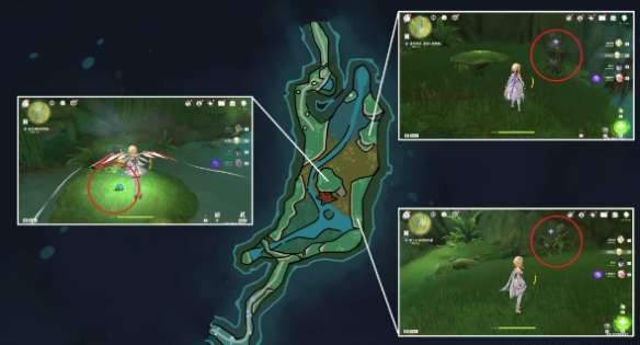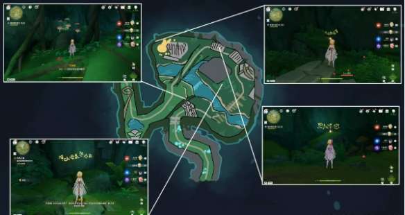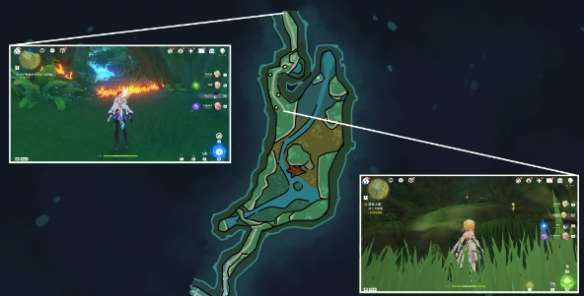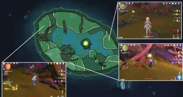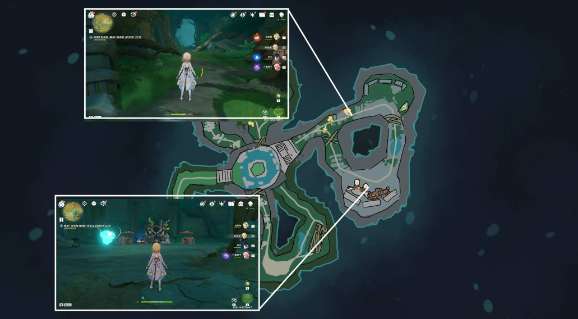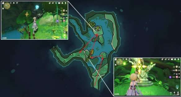 5,我们跟随仙灵,修复这两处的元素方碑,并激活(流程路线如下,包括离开)