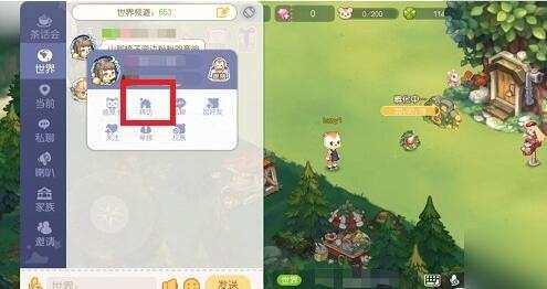 2、玩家点击拜访之后就会进入到好友的家园,这时玩家需要点击左上角头像旁边的【留言板】。