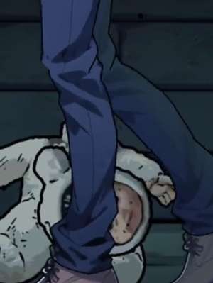 2、我们继续往前走前面路上有一个鬼娃娃我们不要捡,继续走到垃圾桶边捡起垃圾桶边的十字架。