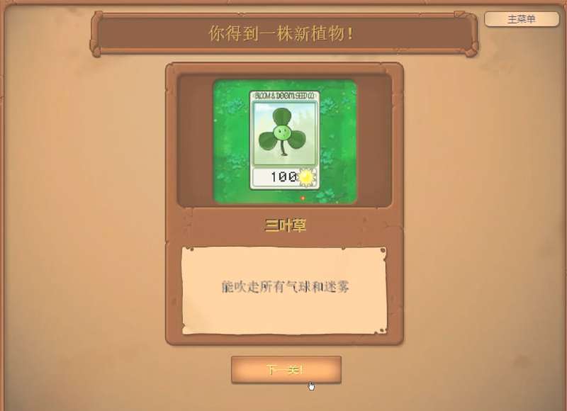 这关通关植物的推荐的植物包括向日葵、高坚果、猫蒲草、三叶草以及寒冰射手。向日葵可以提供足够的阳光,寒冰射手和猫蒲草作为主力攻击植物,高坚果用于阻挡僵尸的前进,风扇草可以吹走气球僵尸。然后带上樱桃炸弹用于应对大量僵尸或紧急情况。