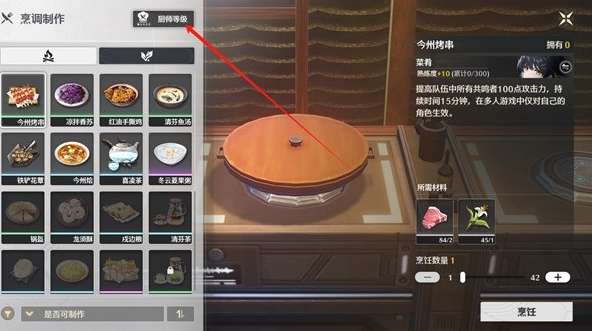 在烹饪台,选择厨师等级,晋升厨师等级可获得食谱。