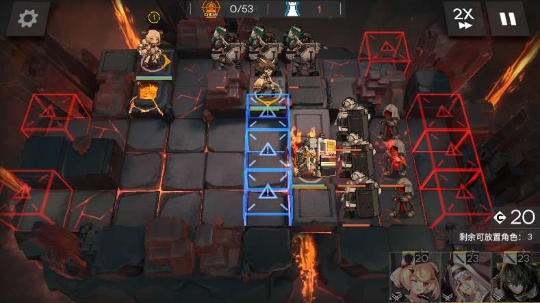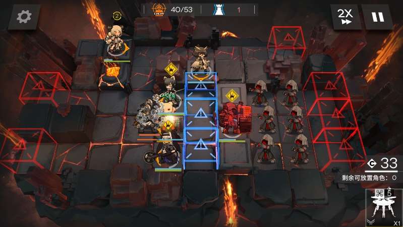 赫默带二技能,放在中间这一行高台(也就是据点上面的这个台子),向下,奶到下面的格子。