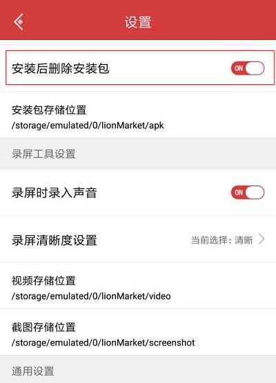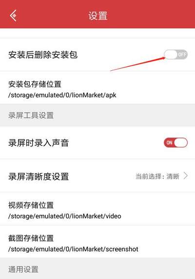 4、在设置页面中,点击安装后删除安装包后面的开关(如图所示)。