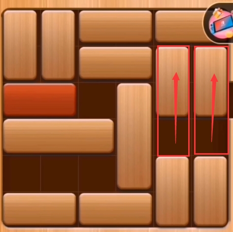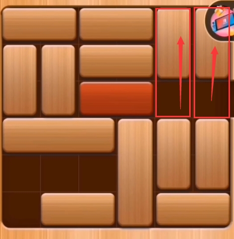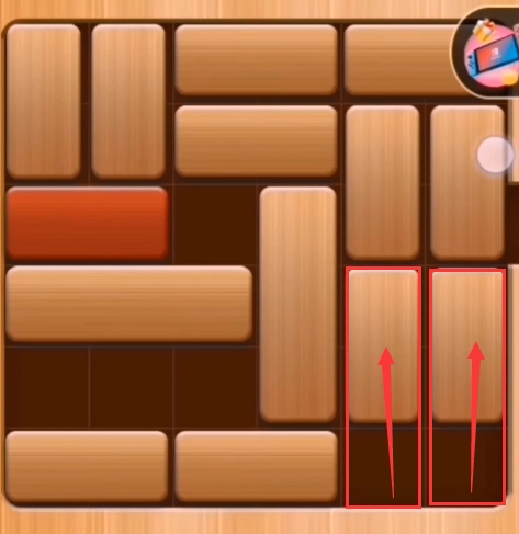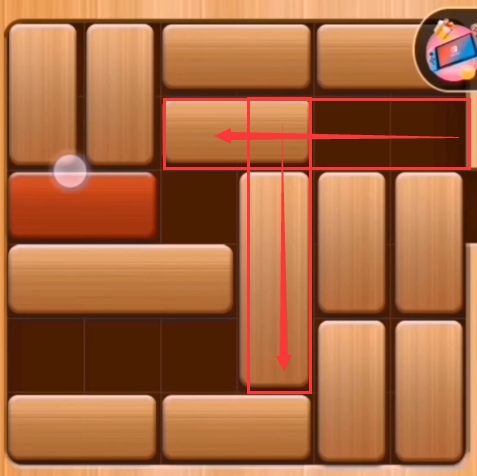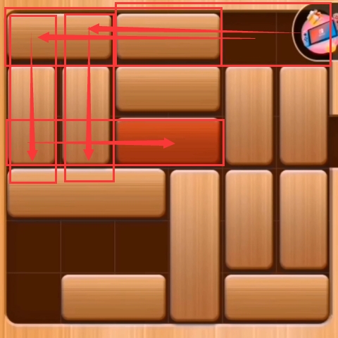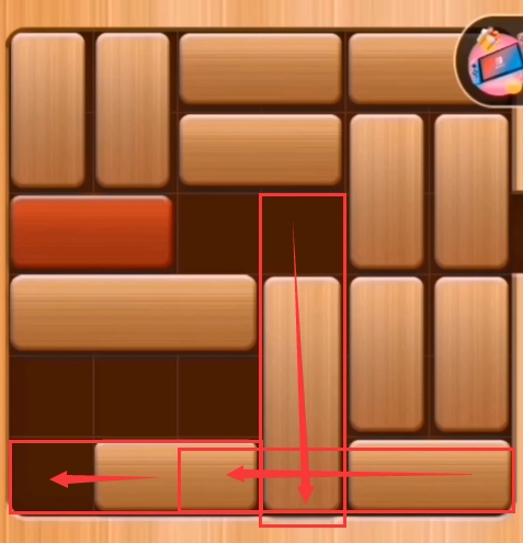 第五步:红木往右边推、第一列、第二列的积木往下推、第一排的积木均左边推: