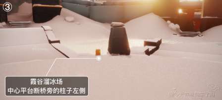3、霞谷溜冰场,中心平台断桥边的柱子边上。