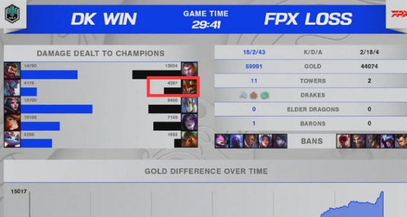 除了英雄BP和游戏视野之外,对面中单ShowMaker的妖姬和辅助Beryl的猫咪很棘手,DK战队的支援速度明显快于FPX战队,再加上DK野辅联动,巨魔加上猫咪的快速机动能力,总之DK战队的野辅联动更好。而最终FPX战队的打野选手小天只打出了4397的伤害量,就比4396的厂长多一点,因此被部分英雄联盟玩家称之为“广长”,因为4397比4396多一点伤害。讲完了英雄BP、视野位置、英雄池,其实还有一个方面很重要,那就是团队执行力,Doinb被困在中路,这样DK战队的团队执行力明显强于FPX,这也侧面说明FPX的协调有问题。