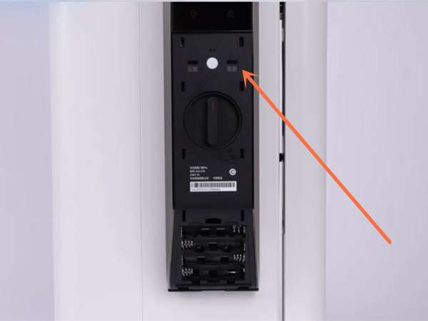 1、找到并揭开门锁的电池盖。