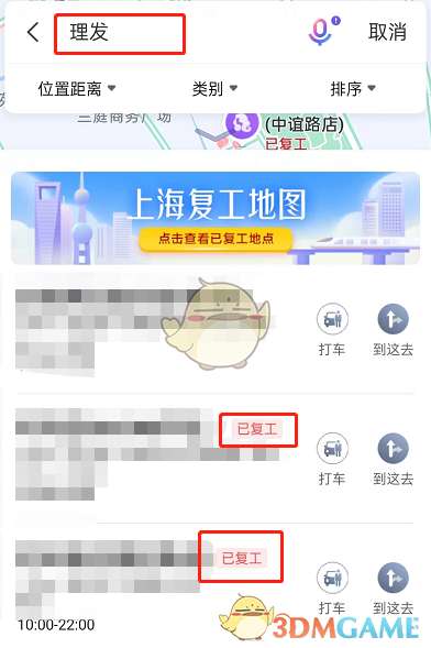 1、打开百度地图,搜索您需要的服务,如理发、美食、商场等,搜索后,即可看到店铺右侧的已复工图标,就表示已经复工,可以前往。