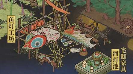 3.搭配多种材料可在【灯市逢春倍觉欢】活动页下兑换建筑【鱼灯工坊】全新家具【河灯池】等奖励。