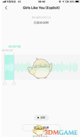 2、在歌曲中裁出来自己想要的部分,点击下方的设置为铃声