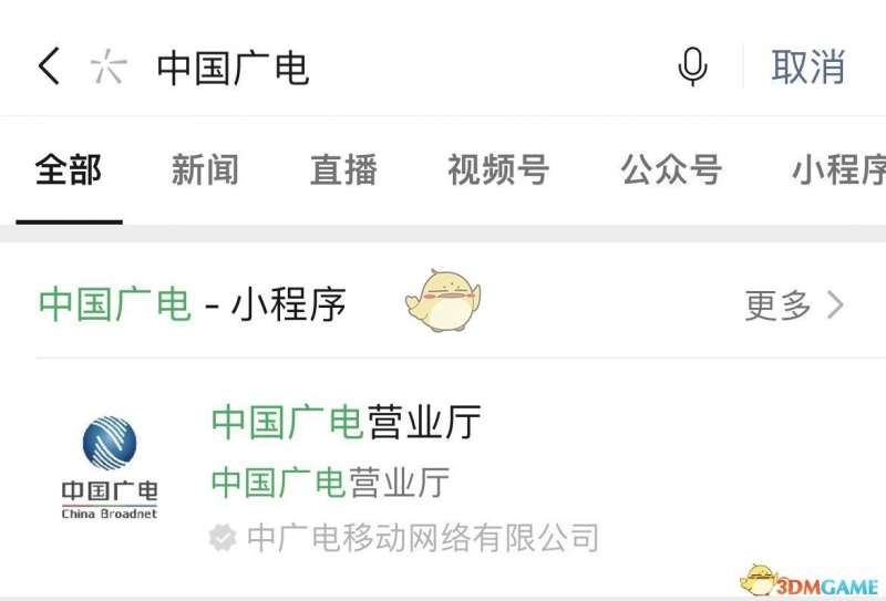 1、以微信小程序操作为例,搜索进入“中国广电营业厅”小程序