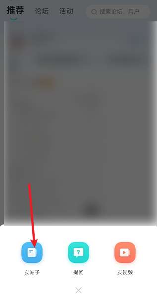 2、然后在出现的选项中,点击【发帖子】(如图所示)。